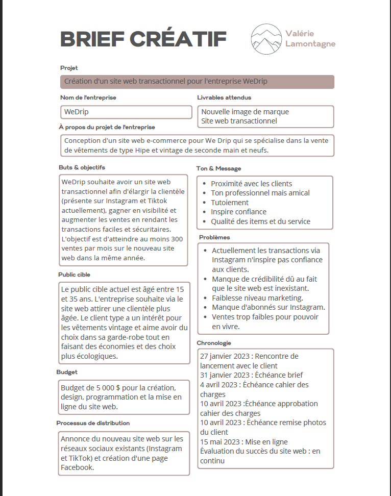 Cahier de charge – We drip